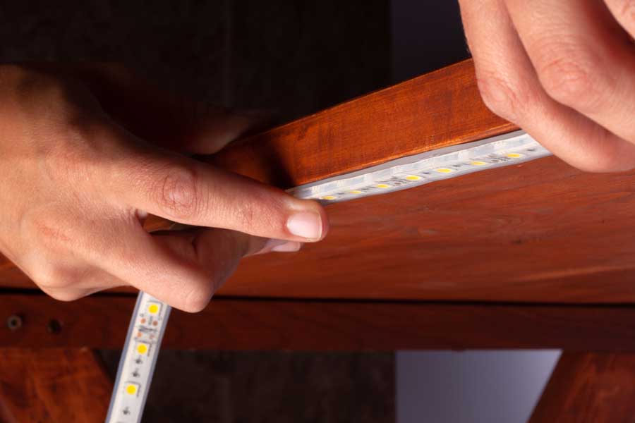 Nun folgt der spannende Teil deiner Anleitung Werkbankbeleuchtung. Messe den Bereich, an dem du die LED-Streifen anbringen möchtest, und schneide die Streifen entsprechend zu. Achte darauf, die richtigen Längen zu wählen, um eine optimale Abdeckung des Arbeitsplatzes zu gewährleisten. Montiere die Streifen mit Kleber oder speziellen Clips fest an der gewünschten Stelle.