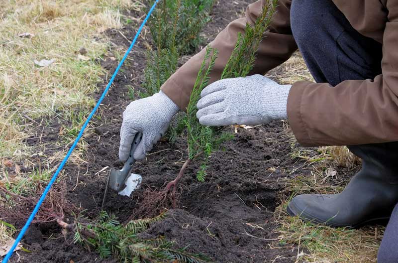 Eiben vertragen darüber hinaus lange Trockenperioden nicht gut. Der Boden, in dem die Eibenhecke steht, sollte so stets unter Beobachtung gehalten werden. Wird dieser zu trocken, ist ein ausgiebiges Gießen nötig. Zur Not besteht auch die Möglichkeit, einen Tropfschlauch anzubringen, welcher eine kontinuierliche Wasserversorgung gewährleistet.
